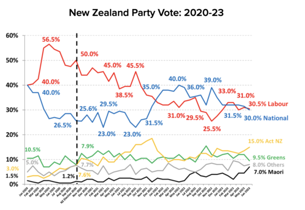 If voters on the Right sense Luxon can’t do it, there will be a late protest surge to ACT that will swell them beyond 15%, cannibalising enough National vote to rob them of a possible majority.
