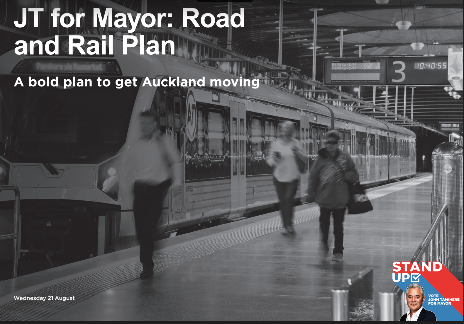 Releasing his Road & Rail Transport policy, Tamihere said it was vital Auckland gets moving. The policy covers road, rail, ferries, cyclists and park ‘n’ rides facilities and has been peer reviewed by transport industry bosses.