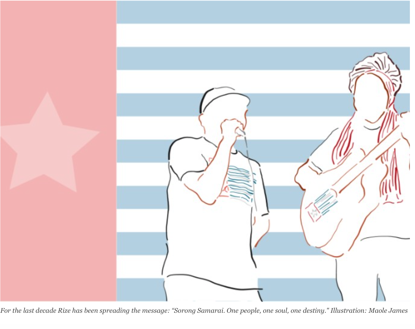 “Rise up freedom fighter. Rise up and take your stand again. Bird of paradise never die in vain. Melanesia you, me rise up again. For those who live in darkness, consider the light afar. Dawn of a new day come. With the rise of the morning star … Sorong Samarai. One people. One soul. One destiny.”
