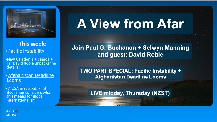 A View from Afar: In the first half of this week’s podcast Selwyn Manning and Paul Buchanan are joined by Dr David Robie to examine instability in the Pacific’s Polynesian region – specifically to identify what’s going on in: New Caledonia, Fiji, Samoa. In the second half, Buchanan and Manning analyse the latest on Afghanistan and consider whether the USA’s humiliating withdrawal suggests an end to liberal internationalism.