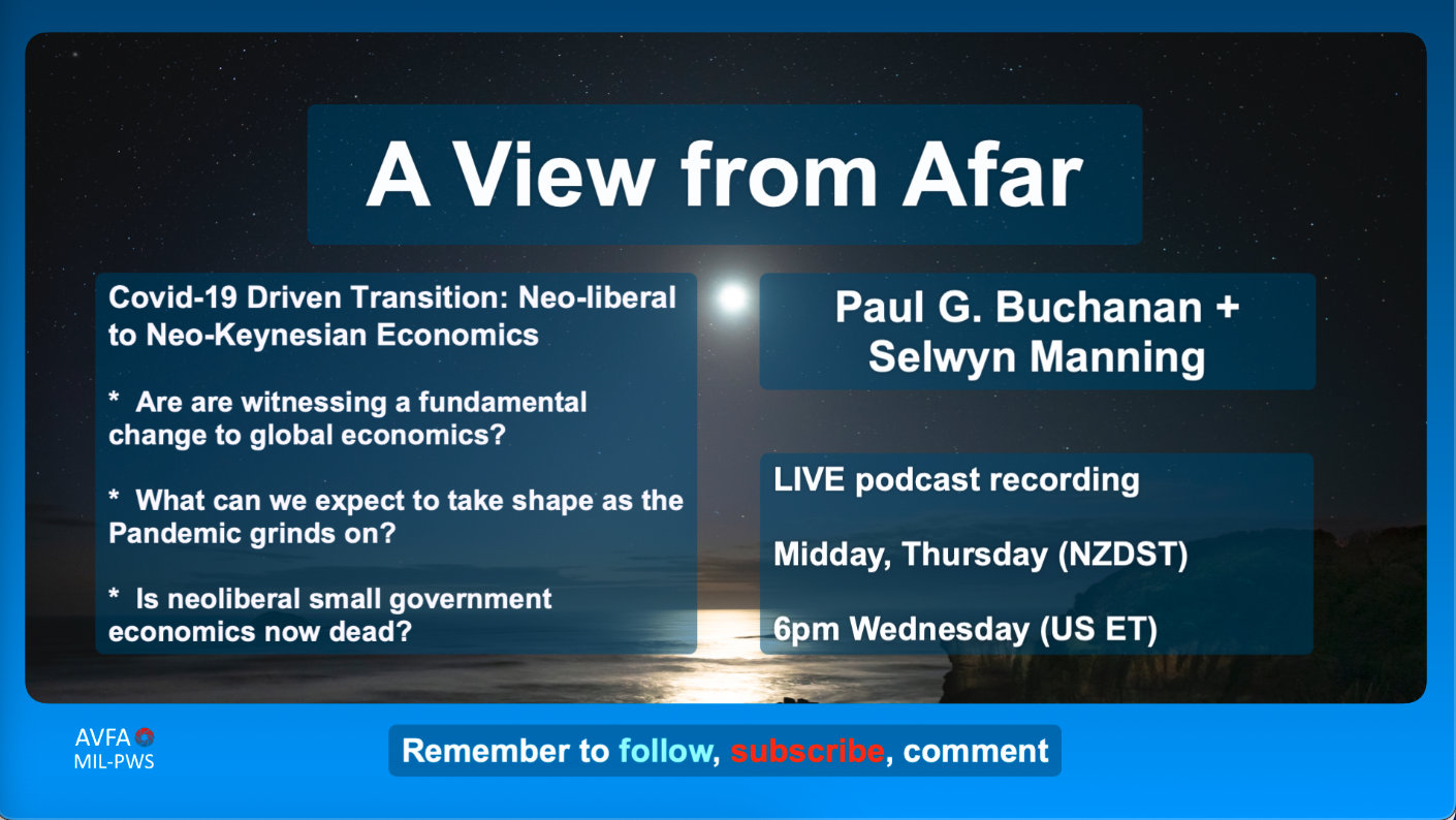 A View from Afar – In this podcast, political scientist Paul Buchanan and Selwyn Manning discuss the Covid-19 driven transition from Neo-liberal to Neo-Keynesian Economics.