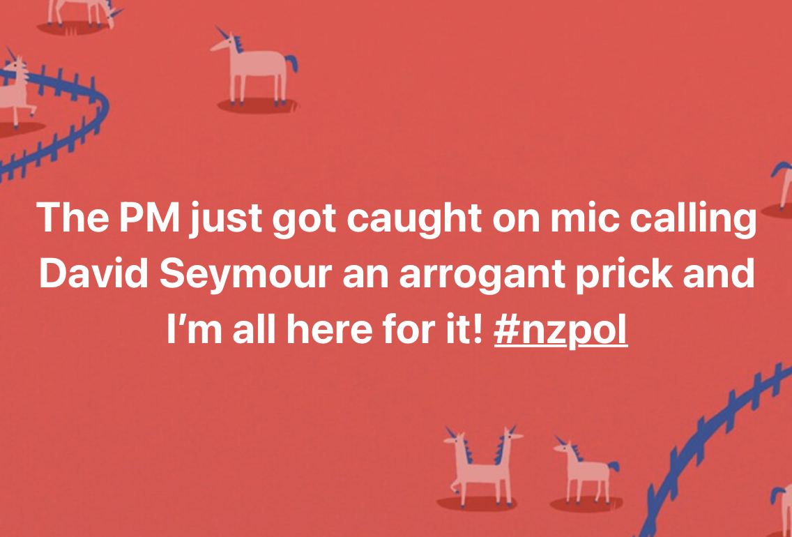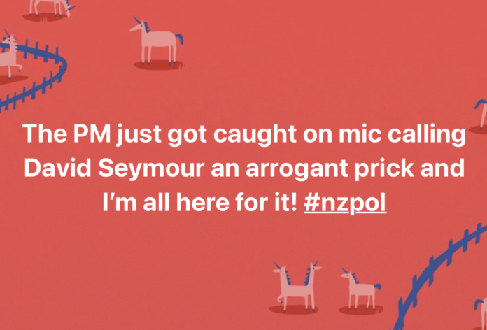 Glenn McConnell (Stuff): Prime Minister Jacinda Ardern calls ACT leader David Seymour an ‘arrogant prick’