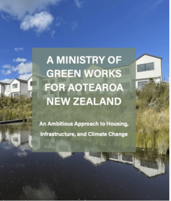 A Ministry of Green Works for Aotearoa New Zealand: An Ambitious Approach to Housing, Infrastructure, and Climate Change is a policy report commissioned by FIRST Union from co-authors Max Harris and Jacqueline Paul that considers Aotearoa’s systemic infrastructural problems and how they could be addressed by a new governmental entity that builds on the former Ministry of Works and integrates several key departmental responsibilities to future-proof the country for significant challenges to come.