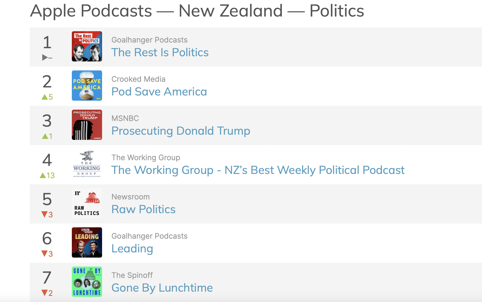 Great news Comrades, despite NO funding from NZ on Air, The Working Group just became the top NZ made Weekly Political Podcast in the Apple Podcast Charts!