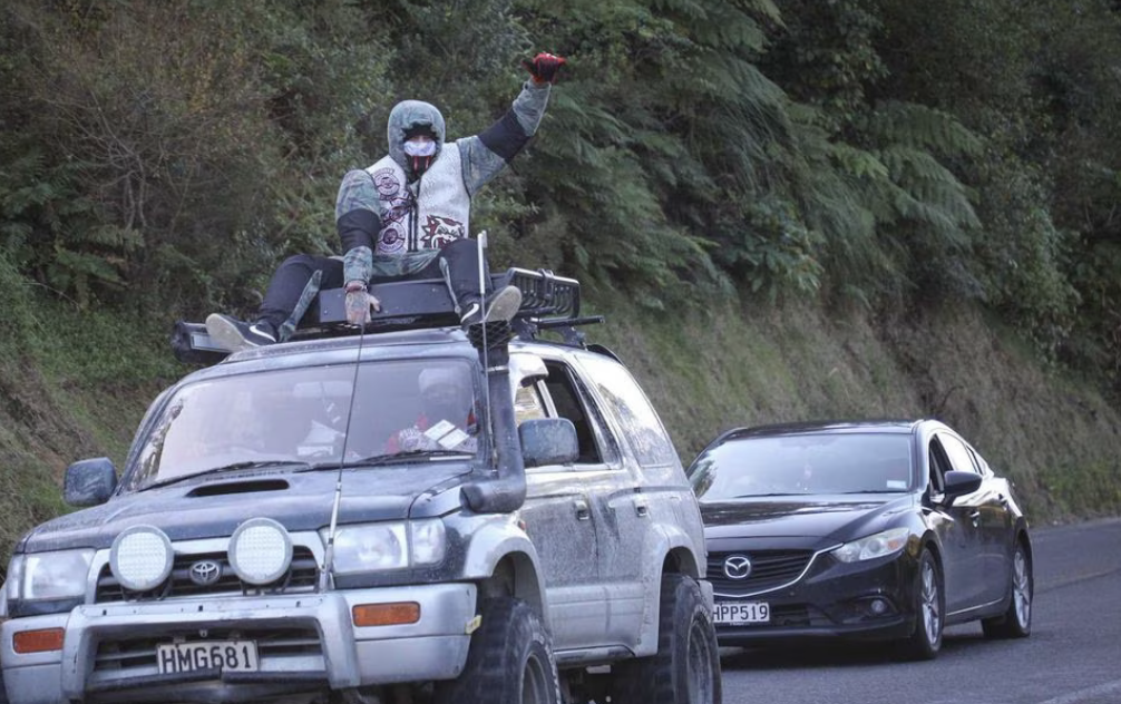 In Ōpōtiki some roads were closed, some burn outs done on motorcycles and a patched gang member rode on top of a car roof.
