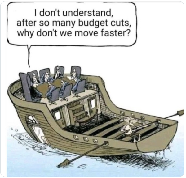 What happens is we have huge numbers of managers and very few staff. The mangers look after their interests, the staff get sacked and hired back as consultants and the same cultural clique keep getting paid while the misery of the poor is ignored.