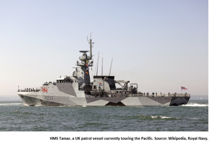 HMS Tamar, a UK patrol vessel is currently touring the Pacific and recently visited Fiji. HMS Tamar is supporting small Pacific nations conducting fisheries and surveillance patrols on behalf of these countries. In this case, Fijian law enforcement officers travel onboard.