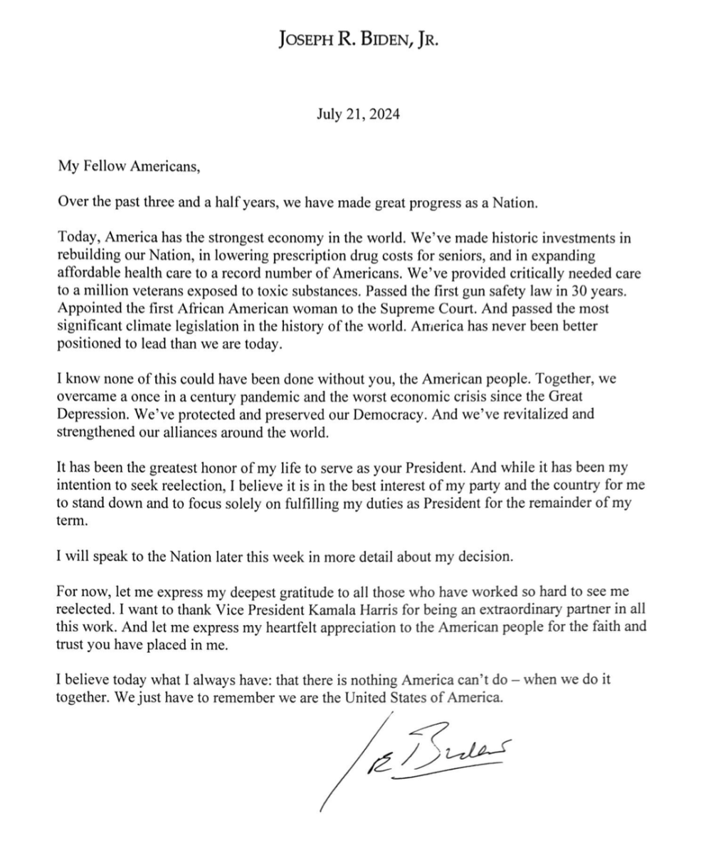 Joe Biden steps down and hands the Presidency immediately over to Kamala Harris fulfilling his legacy of promoting and supporting a better diverse America as a legacy, but the Democrats run a mini primary to select the Candidate, and that candidate SHOULD NOT be Kamala Harris.