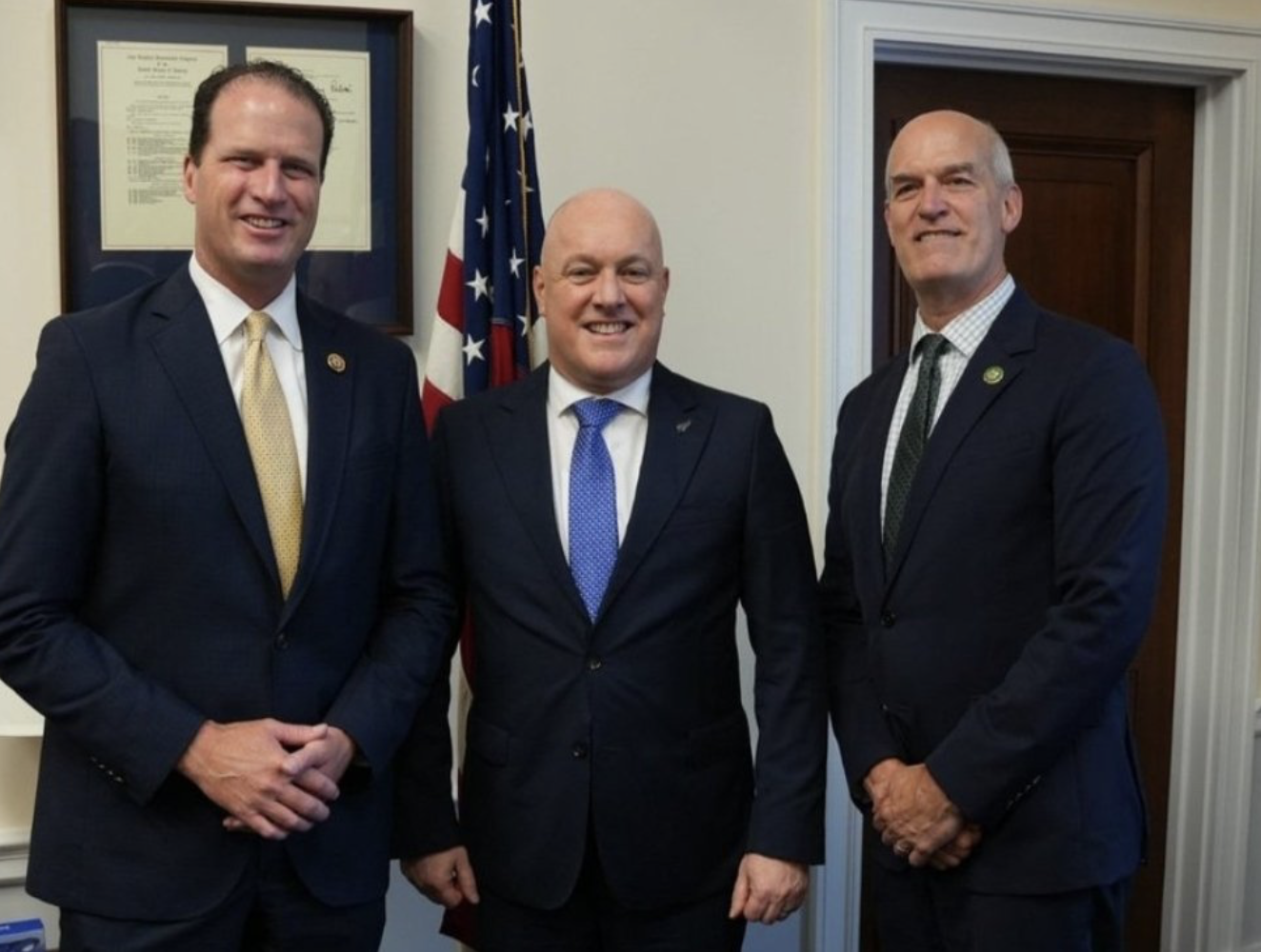 The Prime Minister of New Zealand with two American’s confused why this little Hobbit wants a photo with them