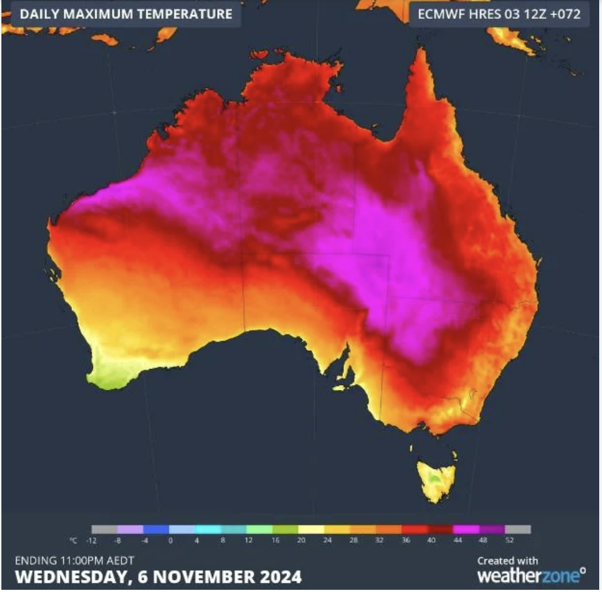 In the Northern Territory, Katherine and Timber Creek were expected to reach 42C while in Western Australia, Derby was expected to hit 38C, and 43C in Marble Bar – frequently one of the hottest places in the country.