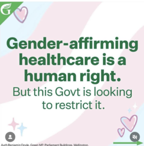 Threatening public funding for community sports groups if you allow a trans player is extremely hateful and utterly disproportionate to the supposed threat of including trans/non-binary people in the first place, so imagine the field day Winston is going to have if the Greens try to make the Select Committee Meeting a platform to lecture on puberty blockers when the scientific review into the use of them is demanding regulation because there are really big questions over their use.