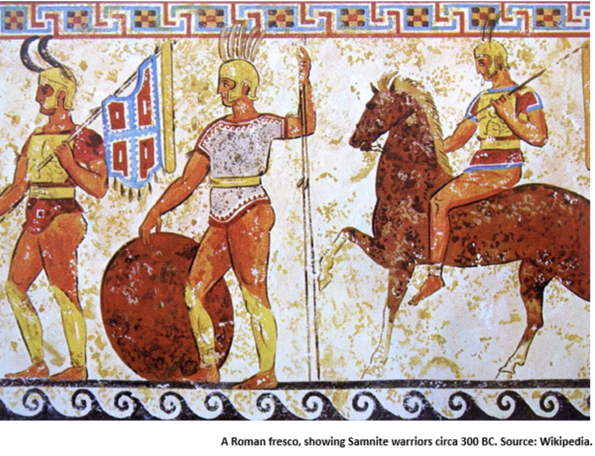 At the time, Rome was a rising power and twenty years before its armies marched south to fight the Samnites. That war started after Campania, a rich state located between Rome and Samnium appealed to Rome for military aid against the Samnites. In 343 BC, the First Samnite War resulted in a Roman victory and an uneasy peace between the two nations.