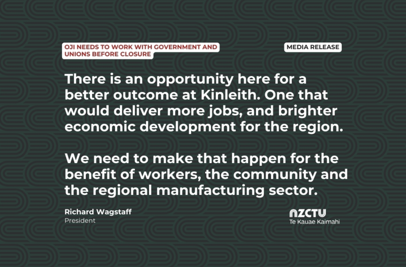 NZCTU Te Kauae Kaimahi President Richard Wagstaff has called on OJI Fibre Solutions to work with the government, unions, and the community before closing the Kinleith Paper Mill.