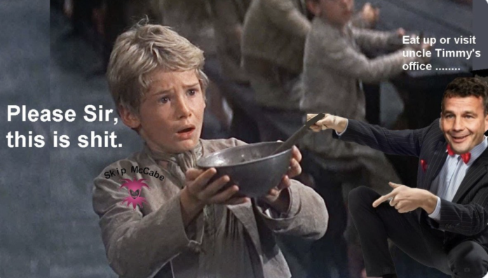 Doesn’t understand his own economic interest. Govt school lunches means more discretionary spending for parents to buy kids a zuru chrissy prezzy.