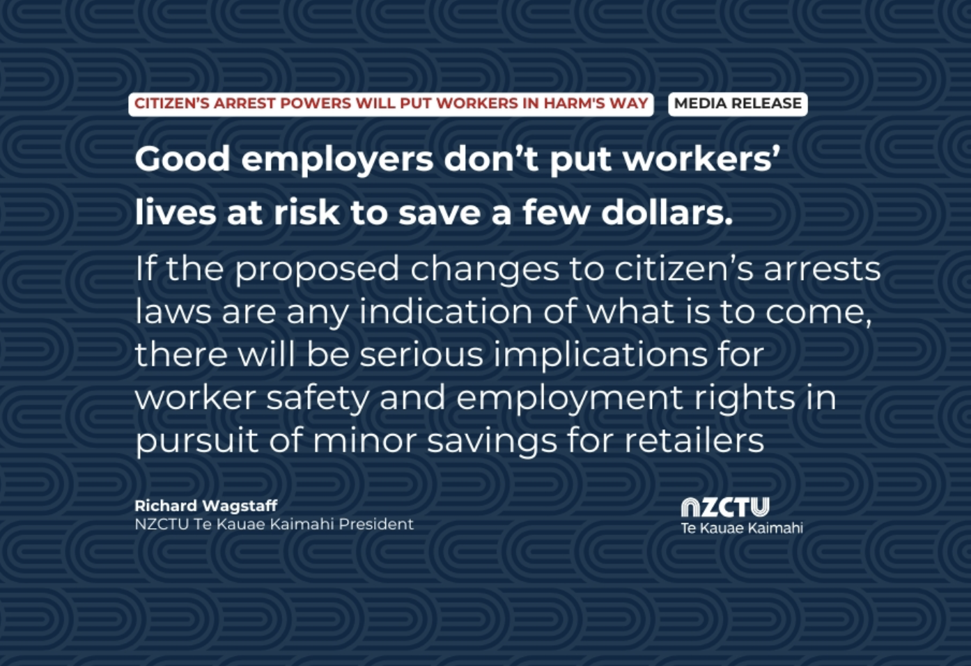 The Government’s announcement to change citizen’s arrest powers shows workers will bear the brunt of their lack of a plan to deal with retail crime, said NZCTU Te Kauae Kaimahi President Richard Wagstaff.