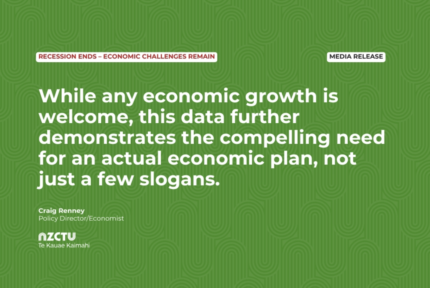 Figures released by Statistics New Zealand today showed that the economy grew by 0.7% ending the very deep recession seen over the past year, said NZCTU Te Kauae Kaimahi Economist Craig Renney. “Even though GDP grew in the three months to December, our economy is still 1.1% smaller than it was in December 2023. Unemployment is up. Annually, business Investment is falling. We are still very far away from being back on track.”
