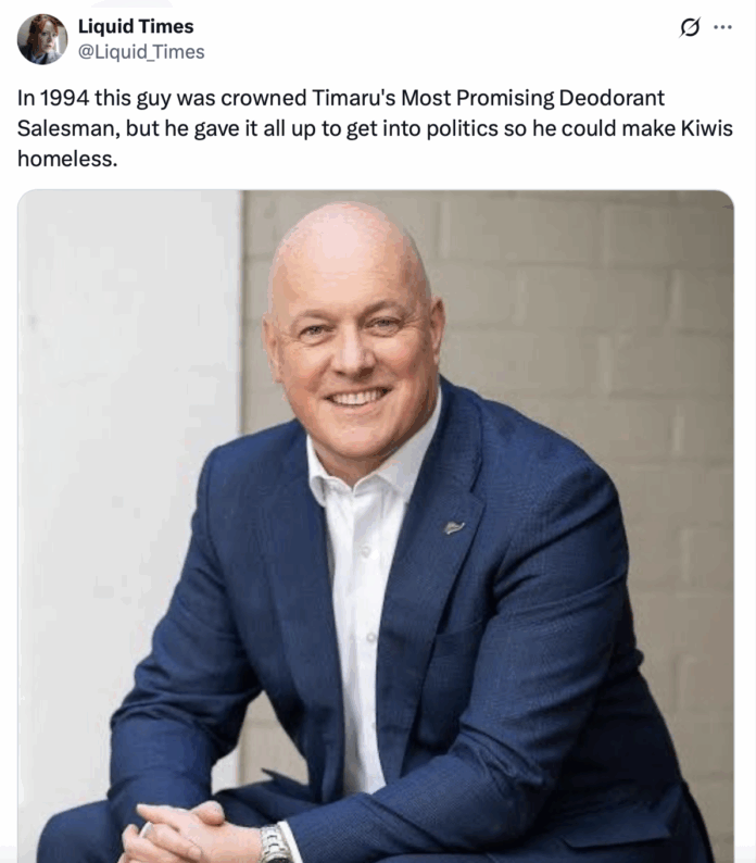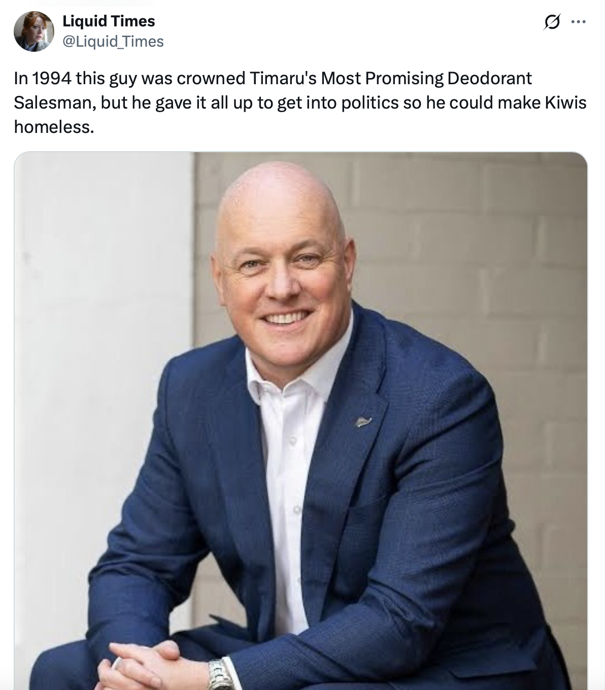 HOW DARE THEY! Suggesting that Chris Luxon once worked for a living. At a bottom feeding job at that!