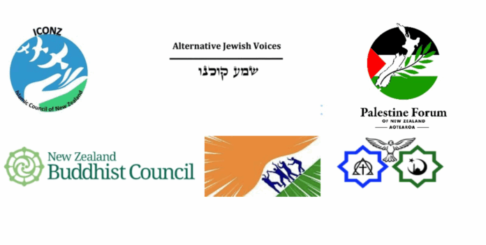 Issued by: Islamic Council of New Zealand (ICONZ), Alternative Jews Voices (AJV), Palestine Forum of New Zealand (PFNZ), New Zealand Buddhist Council (NZBC), Aotearoa Alliance of Progressive Indians (AAPI), The Council of Christians and Muslims (CCM).