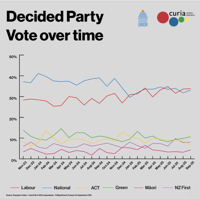 Even the highly contentious and often maligned Taxpayers’ Union Poll from the unregulated Curia Polling says Labour + Greens + MP would be the new Government!
