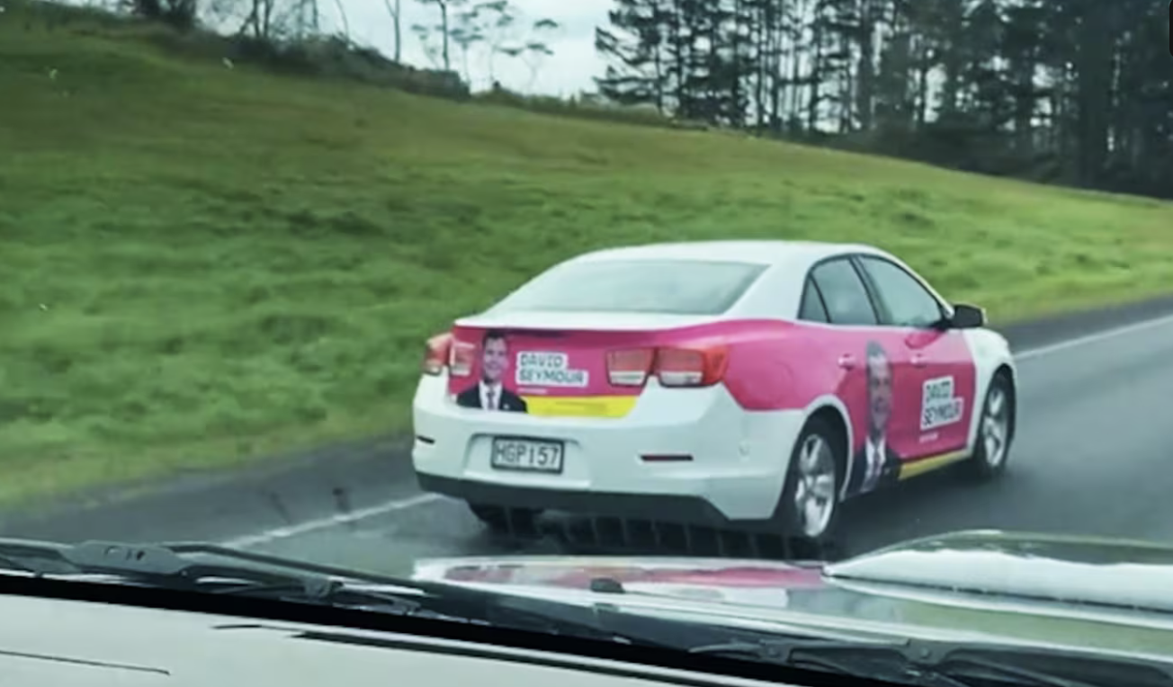 In a video posted to Reddit, an Act-branded car with Seymour’s face on it can be seen passing a fellow motorist from the left-hand lane.