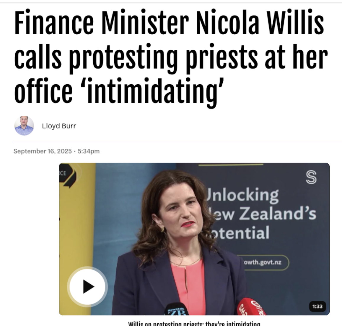 Finance Minister Nicola Willis calls protesting priests at her office ‘intimidating’