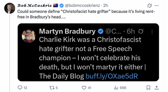 So Bob’s still hanging around like a stale fart? I thought he’d moved on with his life after bellowing impotently at half-naked porn starlets during the Boobs on Bikes parade. (That was peak Bob McCoskrie. We laughed like drains.) But no… he’s still around. Like that insufferable windbag relative who bores everyone shitless during Christmas lunch.