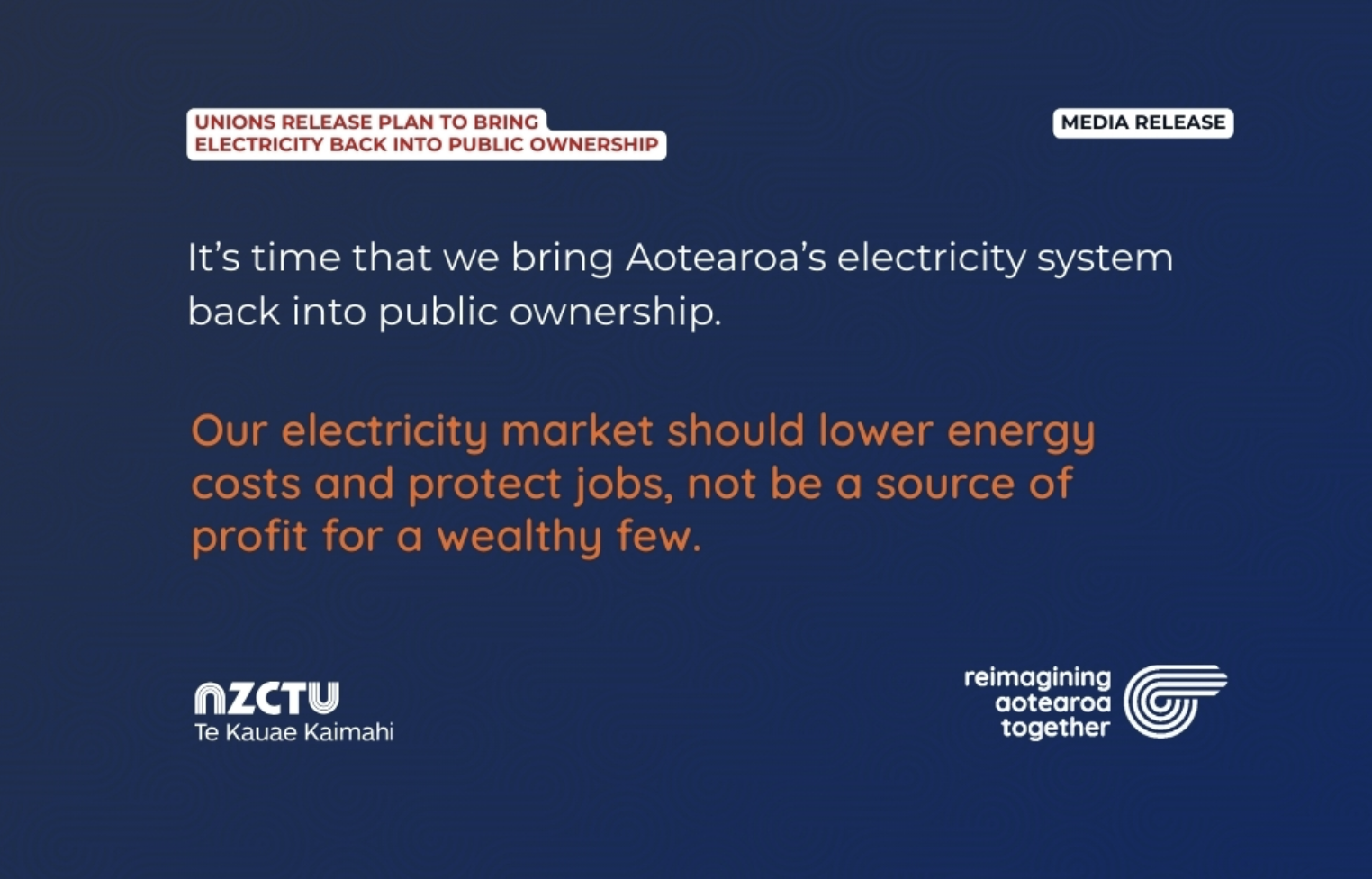 “Aotearoa needs an electricity system that produces affordable renewable energy to support a thriving economy and lower household living costs,” said NZCTU President Richard Wagstaff.
