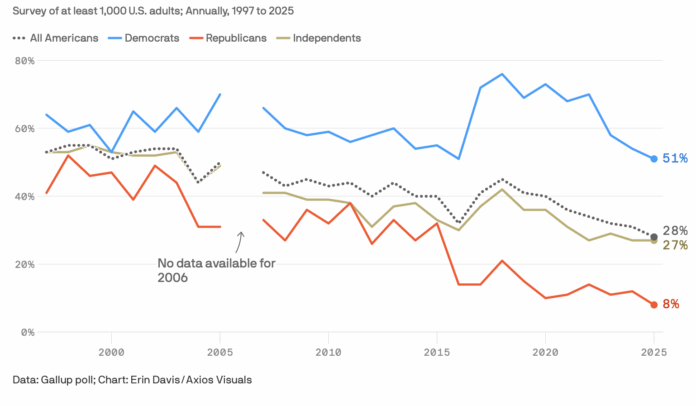 🧒 A steep fall in trust among partisans and younger people has driven most of the overall decline.