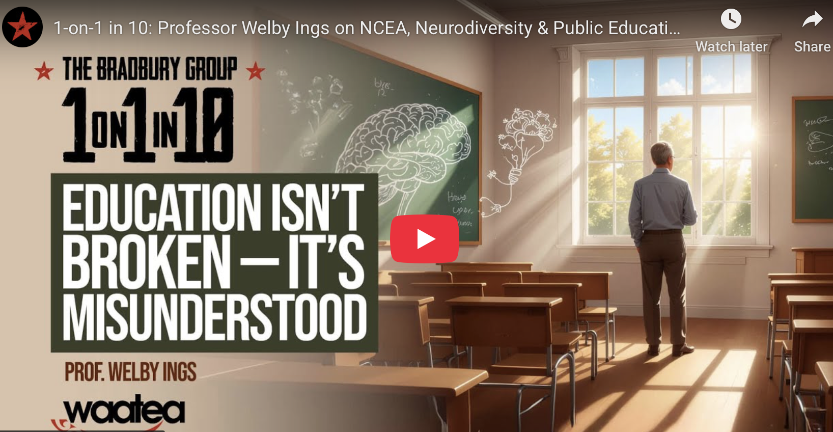 This week’s 1-on-1 in 10 welcomes back education disruptor and academic Professor Welby Ings, whose new book Invisible Intelligence: Why Your Child Might Not Be Failing is already making waves. In a wide-ranging kōrero with Martyn Bradbury, Ings challenges the obsession with standardised testing, defends the value of neurodiversity in learning, and exposes how manufactured crises are weaponised to undermine public education. From mega-strikes to AI replacing teachers, this is a vital conversation for educators, parents, and anyone who believes in the power of state education to transform lives.