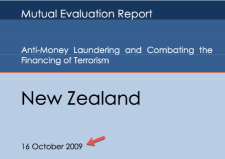 On 16 October 2009, FATF published its report of the country inspection of New Zealand (FATF 2009 NZ Report). The following statements have been extracted from the FATF 2009 NZ Report: