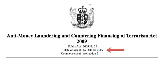 It is important to note that the FATF 2009 Report was dated 16 October 2009 (see figure 1 below) which was the same day that the NZ AML/CFT Act 2009 received its Royal Assent (see figure 2 below).