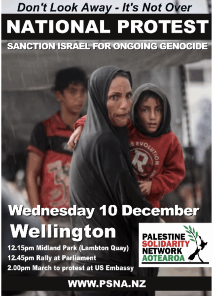 Palestine solidarity supporters from around the country will be marching on parliament next Wednesday, 10 December, to protest government complicity with the US/Israeli genocide in Gaza.