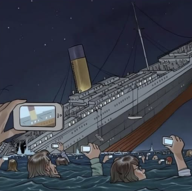 …we have become a species so stupid that instead of fleeing for our lives at danger, we stop to film it for social media.