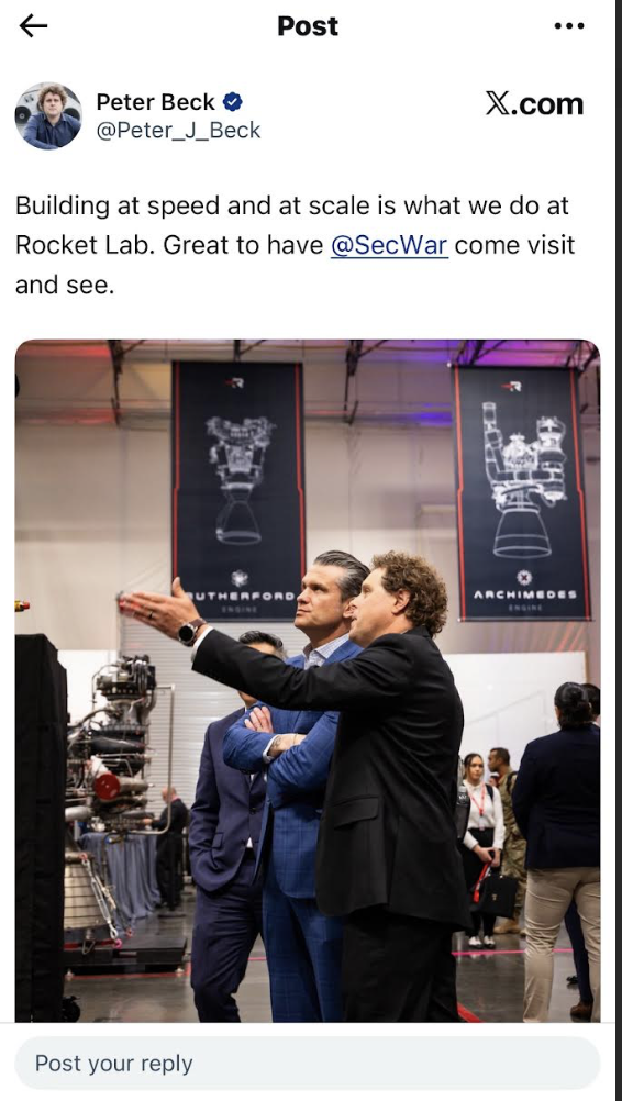 As The Daily Blog has been pointing out for like half a decade now, Rocket Labs is not this Number 8 Wire go getter, it’s a franchisee holder for the American Military Industrial Complex, their launch sites in NZ are a secondary launch site for the CIA and the American Military.