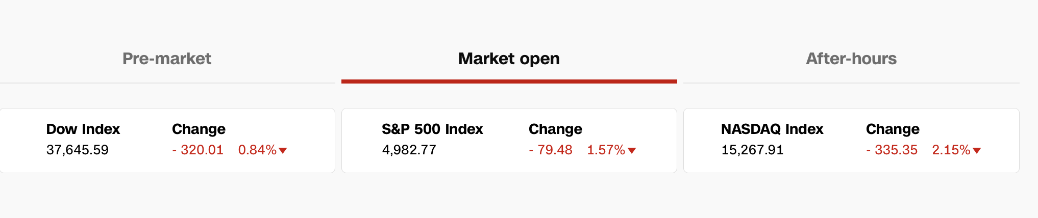The Dow opened on a massive 1000 point rebound and ended up 320 points down and the S&P and the Nasdaq bled out: