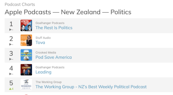 Our 3rd episode last week made us the number 1 weekly political podcast (that is not funded by NZ on Air!)