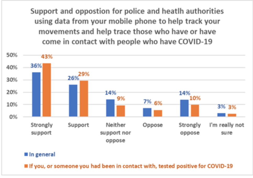 Seven out of 10 adults will support police and health authorities using their personal mobile data to help track and trace those who have been in contact with COVID-19.