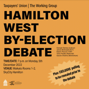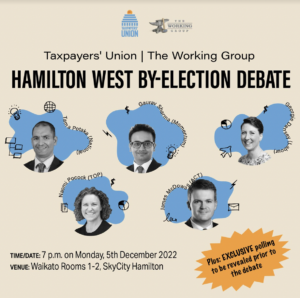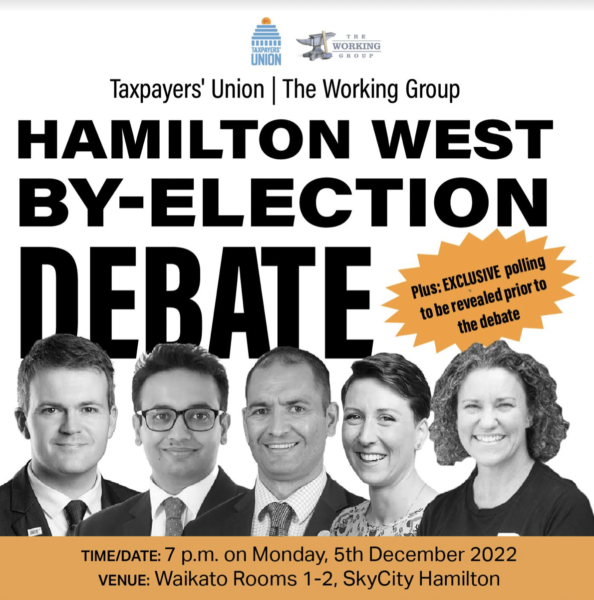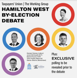 After a successful Auckland mayoral debate earlier this year, the Taxpayers’ Union and The Working Group podcast are again teaming up to host a candidates’ debate ahead of the Hamilton West by-election.