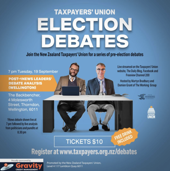 This week something very special. TVNZ are hosting their first leaders debate at 7pm, and we will be watching it live at the Backbenchers Pub and at 8.30pm we will go live with a panel of pundits to debate who won and lost the first debate.