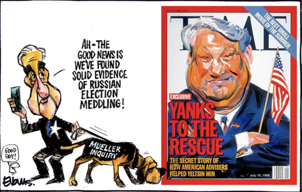 And then there’s the numerous examples of CIA interference in foreign countries’ elections, not least that reported in Time magazine, July 15 1996, which details how the US engineered the election of Boris Yeltsin.