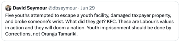 The naked reality is Oranga Tamariki don’t have the facilities to look after these damaged kids safely and ACT wants Corrections to take over imprisoning them.