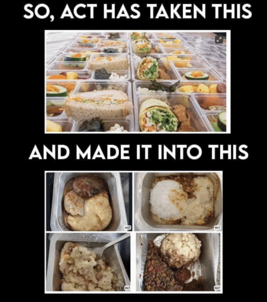 By cutting the lunch in schools program, ACT destroyed 2000 local jobs in favour of a trans national with a terrible record overseas.