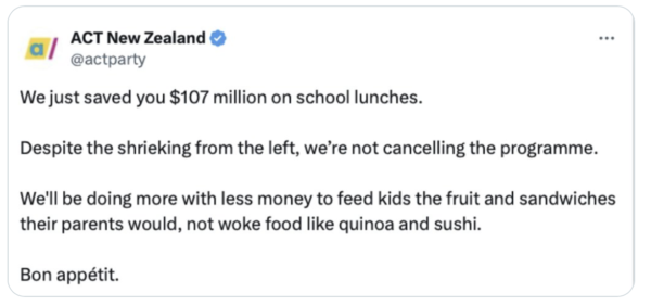 ACT politicise hungry children with campaign against woke food