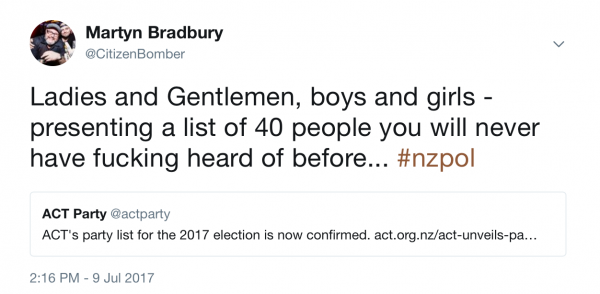 Interesting… ACT’s Deputy Leader, Kenneth Wang, was well down on the Party List. An unheard of situation and one which raises eye-brows as to what the heck is going on in that party.