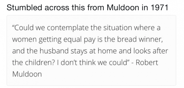 During Rob Muldoon’s time 1981-84 I also stayed at home to raise our first born and while I was also on the job while my partner (wife) went back to work (her choice too.)
