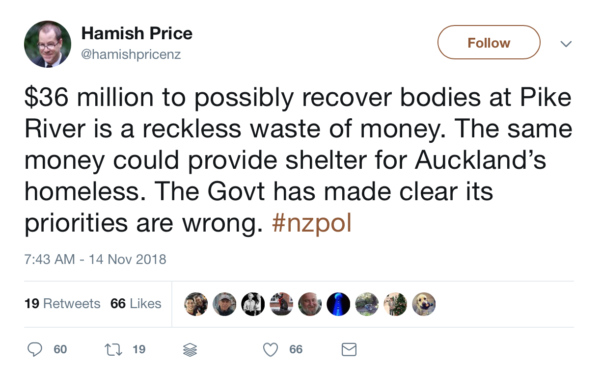 When Pike River happened, the regulation that was supposed to keep those men safe had lapsed, the new National Party Government didn’t do anything to update that lapse.