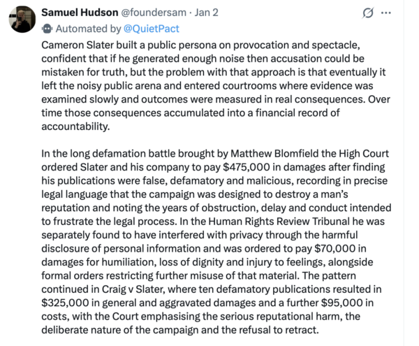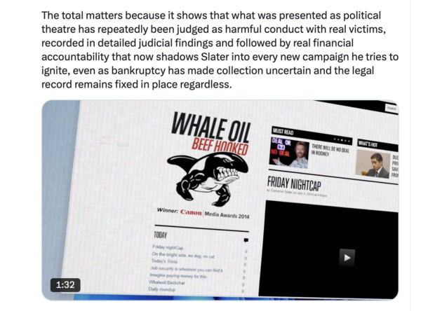 Samual Hudson who has set up a new Kiwi journalism outlet makes the following point about Slater…