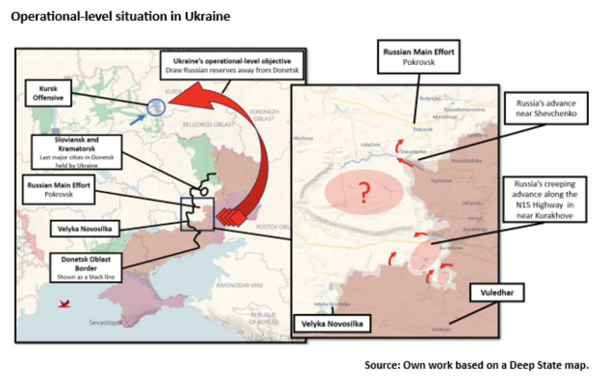 At operational-level, Ukraine appears to be on the backfoot. Its offensive in the north, near Kursk, is contained and is slowly being reduced. Russia is accumulating force in the area, including deploying large numbers of North Korean soldiers into the area. Initial reports indicate that the North Koreans are suffering large casualties in combat, and that there is an issue with desertion. Although these reports are from Ukrainian sources, they ring true. North Korea’s military has no recent military experience, poor training and old-fashioned equipment. Further it is likely that these soldiers are being used as cannon fodder, increasing the likelihood of desertion.