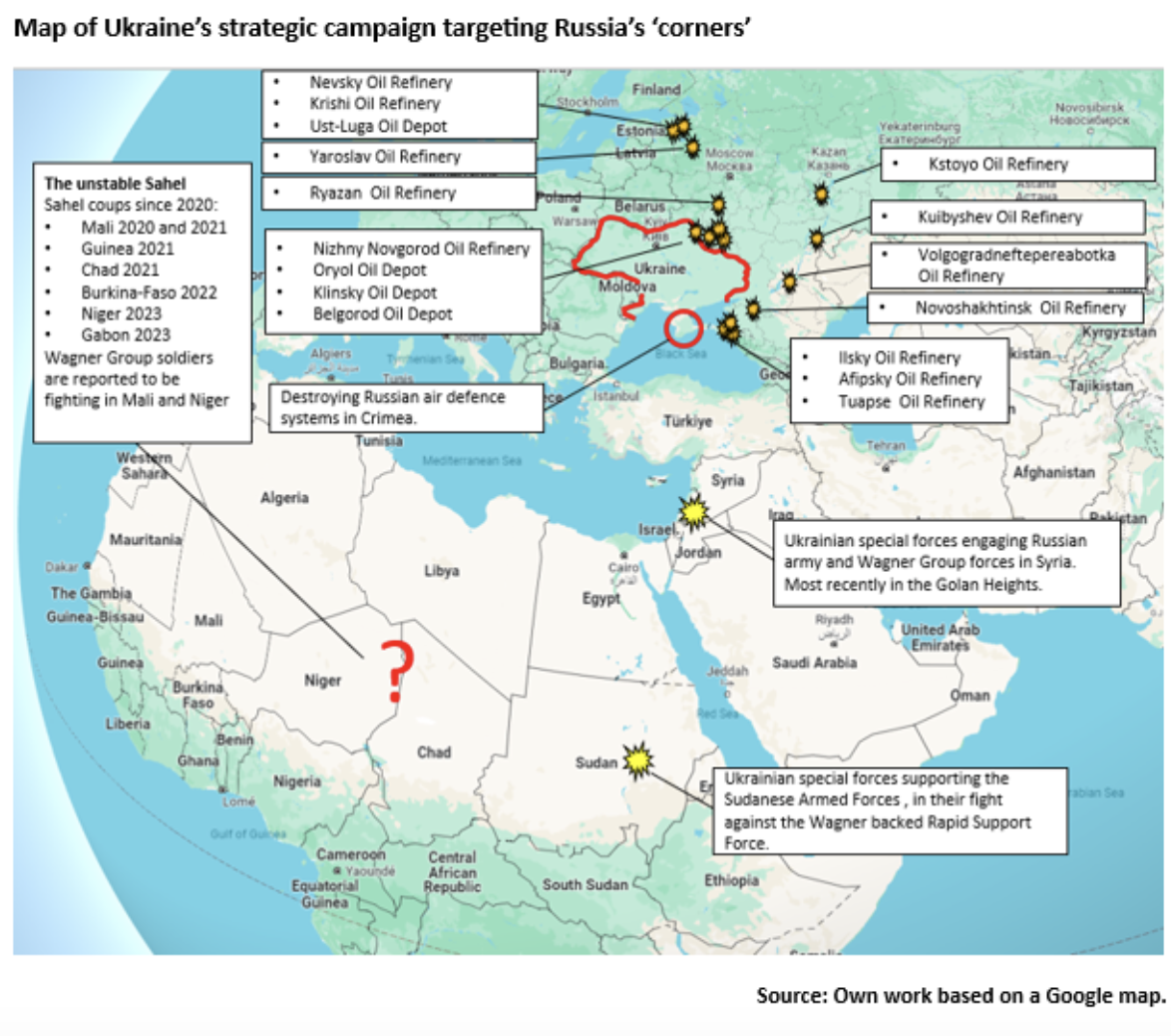 By attacking Russia’s ‘corners,’ far from the battlefields of Donbas, Kharkiv and Zaporizhia, Ukraine is trying to draw combat power away from the land campaign. For instance, sucking scarce air defence missiles into Crimea means there are less to defend the nation’s oil depots and refineries. Ukrainian special forces operations in Africa and Syria require a security response, more soldiers and equipment that cannot then be used in Ukraine. Additionally, using Wagner Group mercenaries is a less attractive option for other nations when their ‘baggage’ includes Ukrainian special force operators.