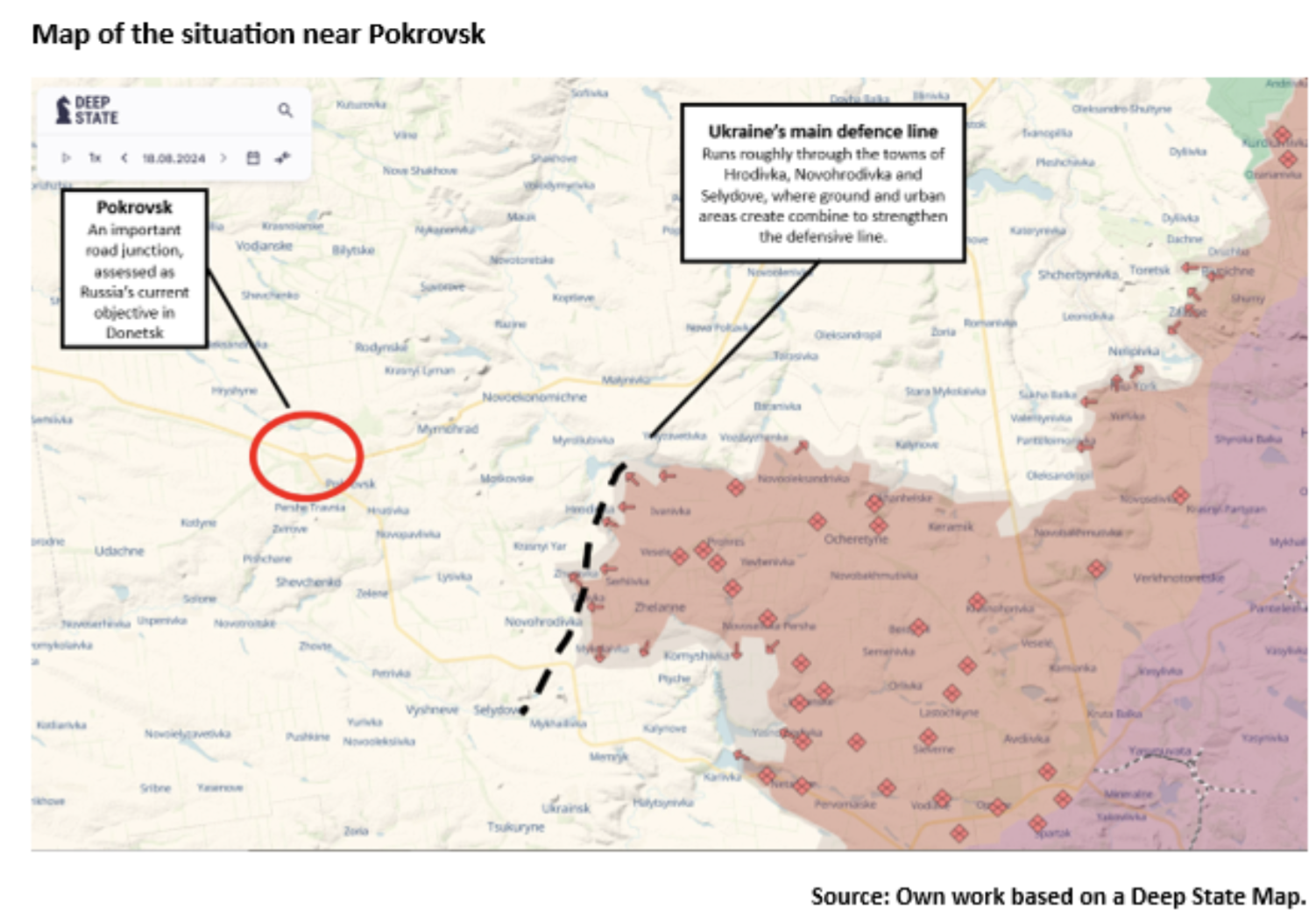 - The speed of Russia’s advance from any breakthrough on that line, east to Pokrovsk.